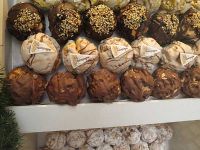 Unterwegs begegnete uns eine Süßspeise der Region: Schneeballen iin verschiedenen Ausführungen, bestehend aus einem Teigknäuel, welches mit Schokolade und Nüssen oder Puderzucker umhüllt ist.