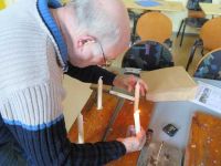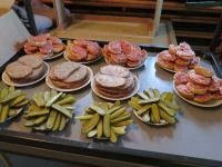 Selbstverständlich gab es nicht nur Stühle und Tische zu rücken. Brote und Brötchen wollten geschmiert und die Bowle angesetzt sein. Kerzen wurden auf ihrer Unterlage befestigt und die Technik abgestimmt.