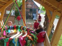 Der Kranz wurde abgenommen und ins Museum gebracht, wo er das Wochenende bis zum Maibaumsetzen am Montag verbringen sollte. Wir saßen noch einige Zeit bei Bier und Bratwurst in der Bank und heckten eine neue Idee aus, die am übernächsten Tag - ein Sonntag, der laut Wettervorhersage sehr sonnig werden sollte - verwirklicht wurde.