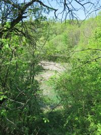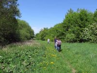 Wir folgten dem Bachlauf und statteten der ehemaligen Tongrube in Mönchenholzhausen einen Besuch ab. Der hier einst abgebaute Ton wurde in der nahen Ziegelei, die es heute längst nicht mehr gibt, gebrannt. Das Gebiet des "Schachtes" ist jedoch längst zum Biotop geworden und mit Bäumen und Sträuchern bewachsen.