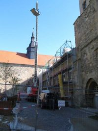 Seit 1997 ist die Kirche saniert worden und zeigte sich jetzt wieder in gute Zustand. Wir besichtigten die Kirche mit der Krypta und genossen anschließend die Aussicht von der Schlossterrasse ins Saaletal bis hinüber nach Naumburg oder sonnten uns in Liegestühlen.