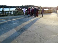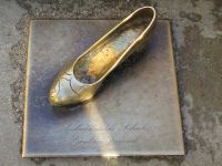 Da wir bis zur Öffnung des Schlosses noch Zeit hatten, sahen wir uns das alte Gemäuer von außen an. Schade, dass der Schlossteich fast gänzlich trockengelegt war. Das schöne Wetter belohnte uns jedoch an diesem Tag mit herrlichem Sonnenschein. Rechts neben dem Schloss führen geschwungene Steintreppen zur Terrasse hinauf. Hier auf den Stufen war eine Bronze montiert, die Aschenbrödels Schuh darstellte. Zahlreiche Touristen - darunter die meisten aus Tschechien fotografierten an dieser Stelle.