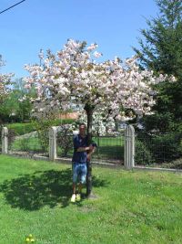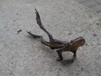 Trotzdem waren wir begeistert von der Natur, auch wenn sie sich etwas trockner als im letzten Jahr zeigte. Wir fanden die Schalen der Süßwassermuscheln, sogar einen mumifizierten Frosch, den wir mitnahmen. Vom Sportplatz aus hatten wir eine schöne Sicht hinunter in den Bach zu der Streuobstwiese mit den frischgrünen Blättern. Weiter ging es am Friedhof vorbei, an den vor einigen Jahren gepflanzten Zierkirschen, die in voller Blütenpracht standen.