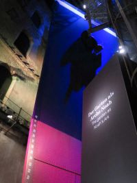 Eigentlich standen zwei Gasometer nebeneinander. Vor dem einen, stand eine Skulptur mit dem Namen "Aktion" vom Leipziger Künstler Otto Berndt Steffen und im anderen war das Panorama installiert. Wie wir schon in Dresden gesehen, hatte man im gewaltigen Rund des Baues ein Panoramabild aufgehangen. Zunächst konnte man sich aber über die Beweggründe des Künstler, Yadegar Asisi, informieren, warum er ausgerechnet dises Motiv gewählt hat.