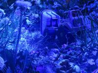 Im Innenraum angekommen fanden wir uns nämlich in "Carolas Garten" als Winzling im Rasen, inmitten von Blumen, Käfern, Grashalmen, Abfall, Kompost, Vögeln und sonstigen Dingen wieder. Dazu gehörte auch ein vergessenes Spielzeugauto oder eine vorüberfließende Quelle. Carola war eine Mitarbeiterin, die vor einigen Jahren verstorben war. Sie hatte sich tatsächlich in ihrem Garten wohlgefühlt und Kraft für die Arbeit getankt. Der Garten, ihr Garten soll auch an die Mitarbeiterin erinnern. Bevor man in den zentralen Raum mit dem Bild kommt geht man als Winzlich auch noch am Bug der Titanic vorüber - ein Überbleibsel einer anderen Schau des Künstlers.