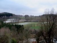 Der Wetterbericht hatte zwar keinen Schnee, dafür aber Regen angekündigt. In Oberwiesenthal sollte es jedoch nur am Morgen regnen und dann, wie im gesamten Erzgebirge, trocken bleiben. Wir hofften dass die Wettervorhersage diesmal Recht behielt. Trotzdem war es besser, zunächst bis nach Oberwiesenthal durchzufahren und die Unterwegs-Pause lieber auszulassen. Das hatte auch einen Grund: Wir mussten nämlich in Oberwiesenthal die Fichtelbergbahn erwischen, die mit oder ohne uns um 10.14 Uhr von dort abfahren würde. Also hieß es für uns, zunächst die nieselregnerischen Aussichten aus dem Bus zu genießen und dann, nach dem Verlassen der Autobahn bei Chemnitz, die Ausblicke auf Städte und Dörfer im Erzgebirge.