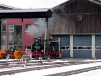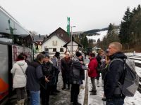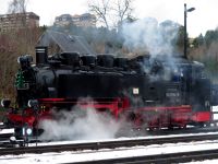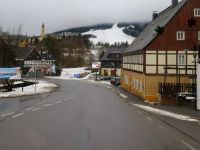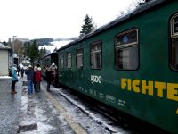 Entlang unserer Strecke begegneten wir auch schon der Fichtelbergbahn, die unseren Weg begleitete bis zu wirklich weißen (wahrscheinlich künstlich beschneiten) Pisten bei Oberwiesenthal.