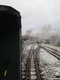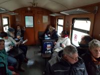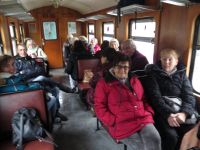 Zunächst  war es im Zug etwas kühl, was sich aber rasch änderte. Pünktlich um 10.14 Uhr schwenkte der Schaffner draußen seine Kelle und Pfiff in die Trillerpfeife. Schnaufend setzte sich der Zug in Bewegung. Man konnte sich vor und hinter den geschlossenen Waggons auf offene Plattformen stellen und in Kurven den Zug so in seiner gesamten Länge sehen.