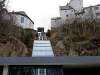 Über unseren Köpfen erhob sich die Altstadt von Schwarzenberg mit dem Schloss. Von hier aus gelangte man mit dem Aufzug hinauf oder zu Fuß über Treppen. Die Gruppe teilte sich hier und jeder entdeckte den Schwarzenberger Weihnachtsmarkt auf eigene Faust.