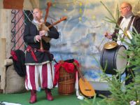 Die Stufen endeten unterhalb des Schlosses und bis zum Schlosshof war es nicht weit. hier befand sich der mittelalterliche Markt mit Musikanten und Buden, die allerlei Kram anboten.