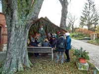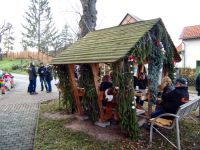 Vom Weihnachtsabaumaufstellen war noch genug Glühwein übrig, um am 15. Dezember noch einmal an die Minzebank einzuladen, zum gemeinsamen heißen Trunk. Wir hatten entsprechende Einladungenin der Vorwoche in der Bäckerei aufgehangen und das Glühweingerät am Sonntag dann ab 13.00 Uhr befüllt. Da wir kein großes "Brimborium" machen wollten, wurden Sitzkissen auf die Minzebank gelegt und jeder sollte seine Tasse selbst mitbringen.