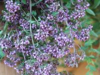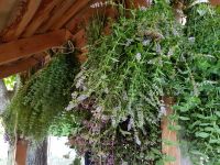 Kurzerhand wurde also die Schere angesetzt und es ging den würzigen Trieben an den Kragen. Wir banden die Stängel wie in jedem Jahr zu Bündeln, die dann in der Minzebank aufgehangen wurden. Diesmal kam noch etwas Schafgarbe dazwischen, die das Ganze noch etwas auflockerte.