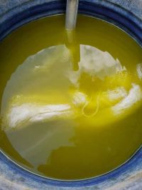 Die Wolle wurde eingeweicht während die Küpe wieder auf Betriebstemperatur von etwa 55 °C gebracht wurde.