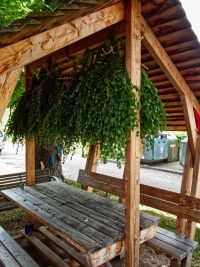 Besucher der Minzebank werden geruchlich feststellen können, dass da nicht nur Minze zum Trocknen hängt, sondern auch Zitronenmelisse und Schafgarbe.