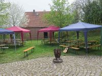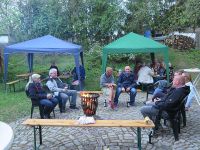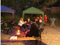 Im Anschluss ging es im Hof unter den Pavillons oder am Feuerkorb weiter. Dort wurden Knüppelkuchen gebacken, Geschichten erzählt oder auch so manche Bratwurst gegessen.