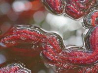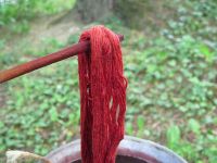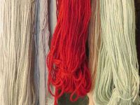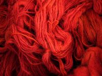 Das Ergebnis konnte sich einen Tag darauf sehen lassen - ein kräftiges Ziegelrot war entstanden. Die Wolle wurde gespült und dann mit Essigsäure fixiert. Nach Waschung und Trocknung hängen nun Stränge ziegelrot gefärbter Wolle im Museum und warten auf einen Blau-Überzug mit Waid.