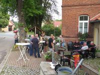 Unterdessen hatte man sich es auf der Minzebank gemütlich gemacht oder stand an den Biertischen und unterhielt sich. Das Wetter war wie geschaffen dafür und die Zeit verging wie im Fluge. Es war schon dunkel, bis der letzte Tisch wieder weggeräumt und auch der Färbetopf geleert war.