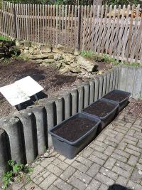 Die Saatrillen waren schnell gezogen. Dort und auch in den Waidkübeln nebenan konnte dann die Saat ausgebracht werden.