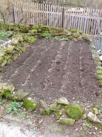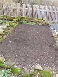 Nachdem die reihen gezogen waren konnte die Saat ausgebracht und wieder mit Erde bedeckt werden. Jetzt hieß es warten auf das erste Grün. Weiter ging die Arbeit dann am Weinhang.