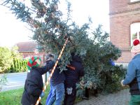 Wie in jedem Jahr wurde am Vorabend zum 1. Advent der Hochstedter Weihnachtsbaum aufgestellt und geschmückt - diesmal also am 30. November ab 15.00 Uhr am Bürgerhaus in Hochstedt, bei frostigen Temperaturen.