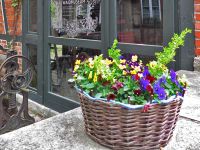 Als Vorbereitung dafür werden im Frühsommer immer die Körbe am Museum neu bepflanzt. Bereits im zeitigen Frühjahr wurden die Exemplare unserer Körbe, deren Böden durchgebrochen waren gekürzt, mit einem Behelfsboden ausgestattet und mit Hornveilchen bepflanzt.