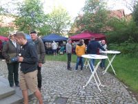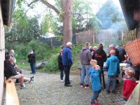 Ab 19.00 Uhr öffneten sich dann wieder die Museumstüren und die Färberei und Führungen begannen. Draußen verbreitete der Rost herrliche Düfte beim Bräunen der Bratwürste und Brätel.
