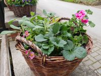 Erst Ende Mai kamen die großen Körbe zum Einsatz, welche mit Kräutern, Obst, Gemüse und Blumen bepflanzt wurden. Besondere Hingucker waren in diesem Jahr rot blühende Erdbeeren.