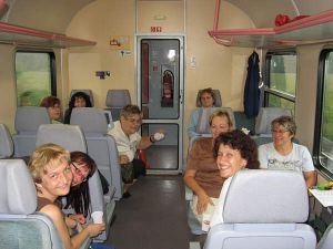 ... bis zur Abfahrt des Zuges. Ermüdet ließen sich die Frauen in die Polster der Regionalbahn sinken, um Kraft zu tanken für den Abend, denn dann sollte es zum Tanz gehen...