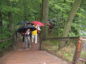 Am Morgen wurde deutlich, dass der Tag etwas feucht werden würde, denn es regnete in Strömen. Die Gruppe, die sich unter dem großen Ahorn in Hochstedt getroffen hatte, entschloss sich nach kurzer Diskussion dazu, nicht zu Fuß nach Vieselbach zu laufen, um "nicht gleich wie die Schweine" dort auf dem Bahnhof anzukommen.