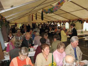 Spannung kam dann auf, als die erste Unterhaltungseinlage angekündigt wurde und die Herrschaften von der Kirmesgesellschaft auf den Auftritt ihrer Mädchen warteten.