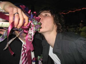 Noch viel mehr Spaß brachte der Kirmesvater, der jedem der es wollte einen Schluck aus seiner Flasche anbot.