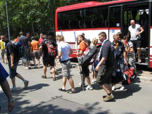 Bei sommerlicher Hitze ging es zwei Stunden vor Anpfiff, um 12:30 Uhr mit dem Bus in Richtung Hochheim.