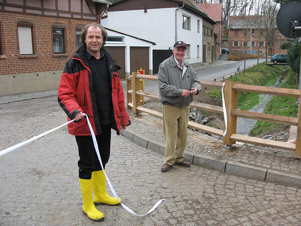 Nachdem im letzten Jahr die Brücke am Waidgarten erneuert worden war, ging man nun daran, die zweite Brücke Hochstedts zu erneuern. Kurz vor Beginn der Bauarbeiten entstanden ...