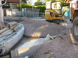 Immerhin begannen in der Woche der eigentlichen Fertigstellung, die Pflasterarbeiten ...