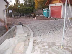 Am 31. Oktober waren die Pflasterarbeiten schon fast abgeschlossen. Es fehlte nur noch das neue Geländer.