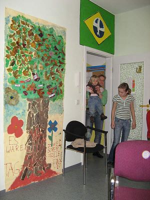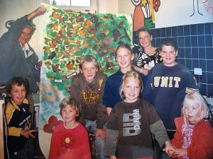 Der Hochstedter Freizeittreff wagte einen Neuanfang und bastelte an den Probetagen - 25. und 26. Oktober 2007 - ein Wandbild mit Naturstoffen, wie Baumrinde und Herbstlaub.