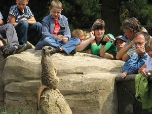 Aber der Weg war noch nicht zu Ende. Die lustig anzusehenden Erdmännchen taten einfach so, als wären sie die Besucher und starrten ihrerseits zu den Zweibeinern hinüber.