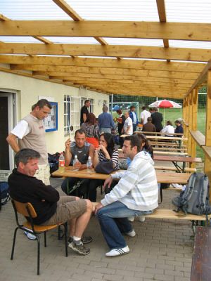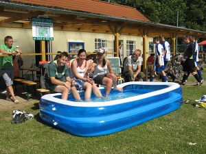 ... wo schon auf den Anpfiff zum Fußballspiel der "Alten Herren" gewartet wurde.