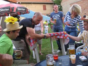 ...dort waren auch schon zahltreche andere Gäste aus nah und fern angekommen, die bereits Getränke vor sich auf den Tischen hatten ...