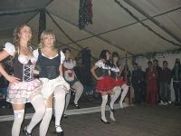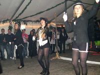 Dann waren die Mädels mit ihrem Auftritt an der Reihe. Mit Zylinder und Stock starrten sie selbstbewusst in die Augen der Kirmesgäste, bevor der erste Ton des Liedeserklang, zu dem sie beides - Stock und Hut - in Bewegung versetzten. Dies natürlich nicht alleine. Die Beine wurden ebenso bewegt, wie die anderen Körperteile. Das Publikum war hingerissen.