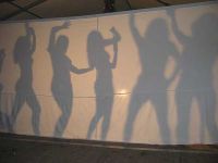 Wer am Nachmittag den Auftritt der Mädels beobachtet hatte, konnte kaum vermuten, dass es noch eine Steigerung geben sollte. Die Steigerung kam jedoch. Was am Nachmittag wegen der Helligkeit im Zelt nicht möglich war, konnte in der Dunkelheit des Abends verwirklicht werden. Die beiden Tanzeinlagen wurden miteinander verbunden und das Umziehen geschah vor aller Augen, jedoch hinter einer Leinwand, die nur Schattengestalten zeigte. Das zeugte wirklich von Einfallsreichtum und wurde mit großem Erstaunen von den Zeltgästen aufgenommen.