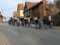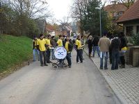 Der dritte Tag gehörte zunächst dem ganzen Ort, denn die Kirmesgesellschaft zog mit Sack und Pack, sowie Pauken und Trompeten durch Hochstedt. Die Ständchchen waren es, die sie durch das Dorf trieben.