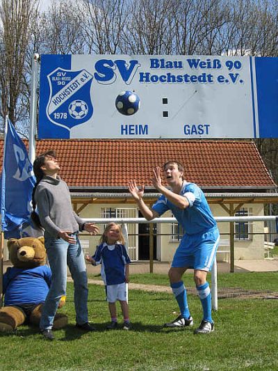 Natürlich wurde es beim SV Blau-Weiß 90 Hochstedt e.V. spannend gemacht und der Fototermin bis zum letzten Tag der Bewerbung hinausgezögert. Unter strahlend blauem Himmel wurde das Foto letztendlich geschossen.  Dabei herausgekommen sind folgende Bilder, von denen sogar eines animiert werden konnte.