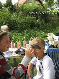 Neben dem Kinderschminken gab es auch eine Bastelstrecke. Wer wollte, konnte sich auch am Schlagzeug ausprobieren. Für den kleinen Hunger gab es Wiener Würstchen.