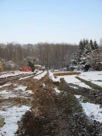 Nach der Fertigstellung des Regenrückhaltebeckens begannen nun, Ende November 2010, die Arbeiten für den Abfluss des Beckenwassers.