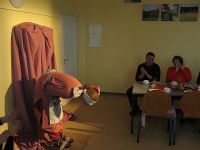 Gebannt hingen die Senioren an den Lippen und an der gesamten Figur der Marie, verfolgten gespannt ihre Geschichte und applaudierten nach deren Ende. Zum Schluss spendierte die Magd noch eine Schokoladensüßigkeit und verabschiedete sich wie sie gekommen war: mit einem Flötenspiel.