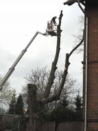 | Die letzten großen Äste fallen bis nur noch der Stamm steht | |