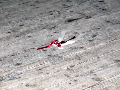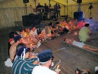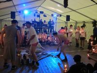 | Ablage der Kirmesschleifen und -mützen und Auszug aus dem Zelt | |