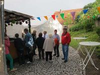 Das Wetter hielt und es blieb (im Augenblick) trocken. Es war auch nicht kalt, sondern im Zelt sogar angenehm. Es duftete nach Bratwürsten und die Salate verlockten zum Probieren. Sogar die Sonne hatte sich entschlossen, die Wolken zu vertreiben und spendete ungetrübtes Licht.