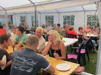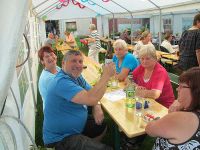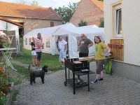 Am 4. August 2012 fand das 11. Straßenfest in der Schmette statt, die auch Latschengasse genannt wurde. Im letzten Jahr war ja fast der Winter ausgebrochen, was sich in diesem Jahr ins Gegenteil verkehrt hatte. Die Sonne hatte den ganzen Tag vom blauen Himmel gestrahlt und die Temperaturen waren mehr als sommerlich. Auch nach 18.00 Uhr ging es eher heiß zu, besonders im Feier-Zelt. Trotzdem waren schon zahlreiche feierwütige Anwohner aus der Straße und solche aus anderen Straßen Hochstedts beim gemütlichen Fest.